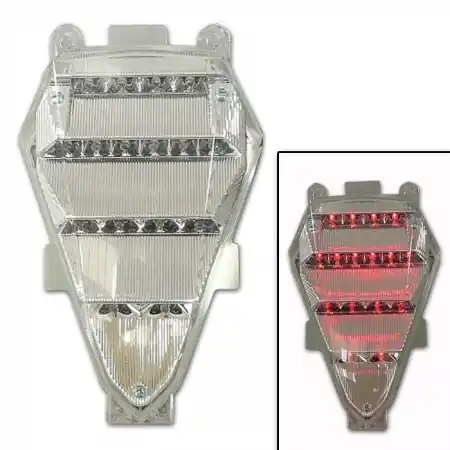 LED achterlicht voor de Yamaha YZF-R6 (controleer in de motorlijst het bouwjaar van de YZF-R6). Dit achterlicht kan direct zonder aanpassingen worden geplaatst in plaats van het originele achterlicht. Dit geldt ook voor de aansluiting op de bestaande bekabeling. Het betreft een degelijk en hoogwaardig afgewerkt achterlicht (helaas veel goedkope rommel te krijgen). Het LED achterlicht voor je motor is voorzien van krachtige LED’s en zorgt voor goede zichtbaarheid (ook bij Smoke uitvoeringen).