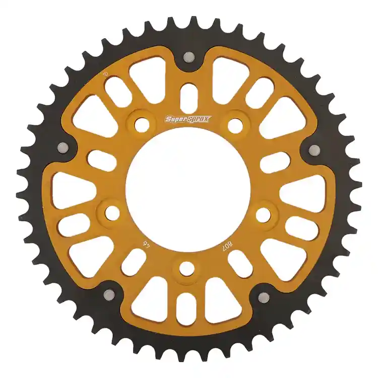 Een gouden sprocket, zoals de SUPERSPROX REAR STEALTH, geeft niet alleen een sportieve uitstraling aan je motor, maar biedt ook duurzaamheid en versterkte prestaties.