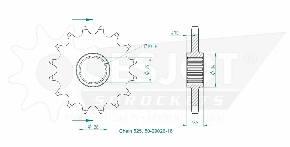 De kwaliteit van een sprocket kan een grote impact hebben op de algehele rijervaring. De ESJOT FRONT 16T, 525 is gemaakt van duurzame materialen die zijn ontworpen om de tandwielen van je motor optimaal te laten functioneren. Dit betekent minder slijtage en een langere levensduur van zowel de sprocket als andere drivetrain-componenten.