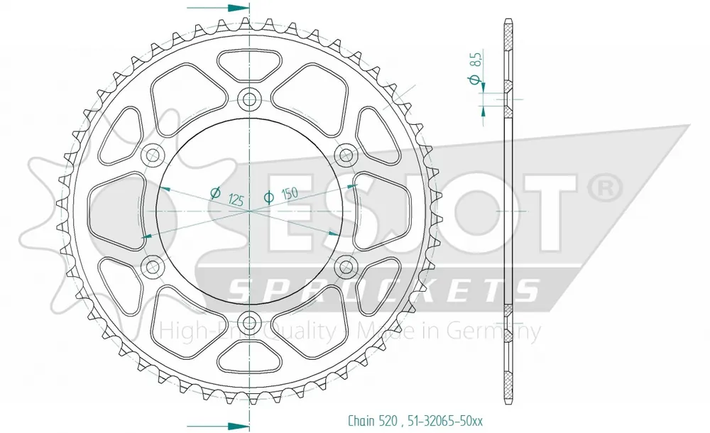 Met de ESJOT REAR ALU 50T, 520 profiteer je van de voordelen van een lichtgewicht ontwerp dat niet ten koste gaat van de sterkte. Het aluminium materiaal zorgt ervoor dat je minder gewicht hoeft mee te dragen, wat bijdraagt aan betere acceleratie en wendbaarheid. Dit is essentieel voor zowel straat- als off-road rijden.