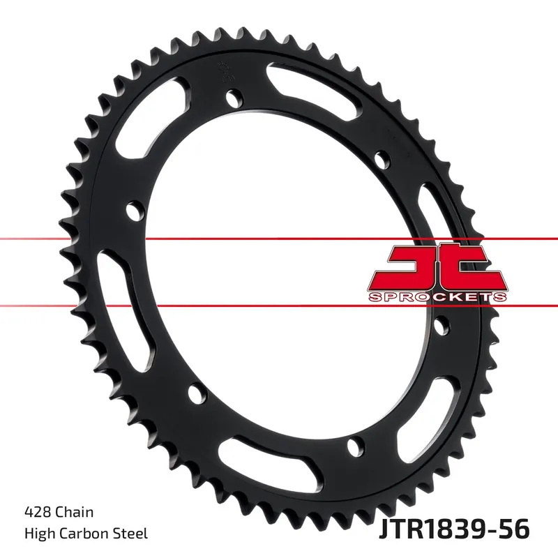 De JT SPROCKETS REAR STEEL 56T, 428 is een hoogwaardige achtertandwiel die speciaal is ontworpen voor verschillende modellen van Yamaha motoren. Dit tandwiel is ideaal voor motorrijders die op zoek zijn naar een betrouwbare en duurzame vervangingsonderdeel.