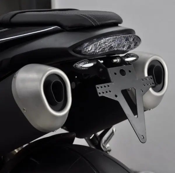 Kentekenplaathouder voor de Triumph Speed Triple 1050 (controleer in de motorlijst het bouwjaar van de Speed Triple 1050). Deze kentekenplaathouder is van degelijke Duitse kwaliteit en wordt geleverd met een lange en korte variant.