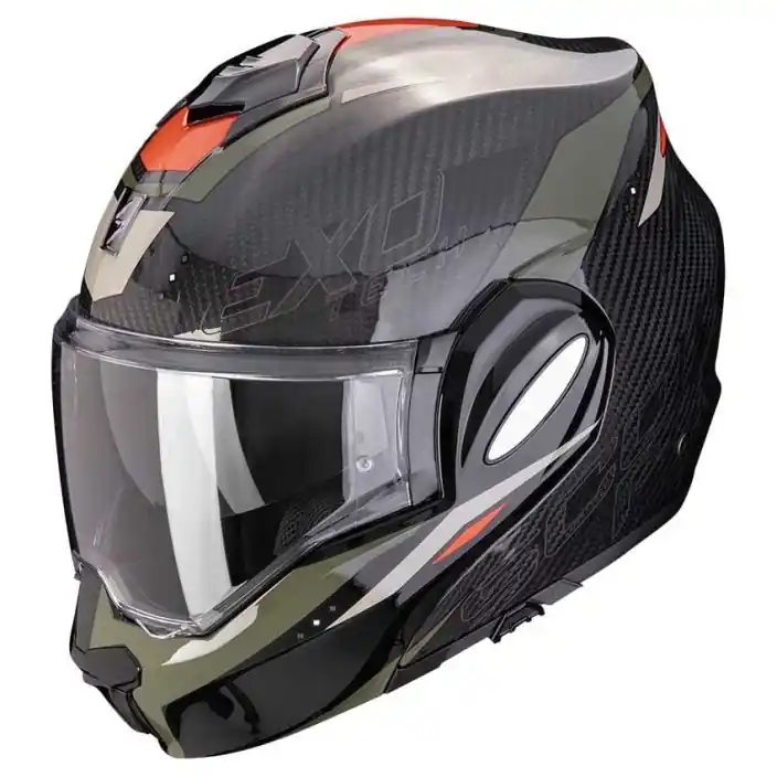 Met de Scorpion EXO-Tech slaat Scorpion een hele nieuwe weg in. Een systeemhelm waarbij het kinstuk volledig naar achteren kan. De helm krijgt daardoor een stoer uiterlijk, die voornamelijk bij de naked bike rijders in de smaak zal vallen, maar blijft wel praktisch. Wanneer het kinstuk naar achteren geplaatst is valt die volledig weg en vangt daarbij geen wind. Het vizier blijft dan wel op zijn plaats om de ogen te beschermen tegen wind en andere dingen. De helm heeft dan ook een dubbele homologatie. Dit houdt in dat die zowel als integraal helm en als jethelm gekeurd is. De helm komt in twee shel maten om de perfecte pasvorm te bieden zonder onnodig gewicht te dragen.