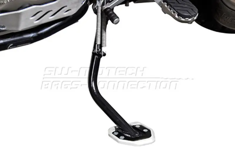 Met je BMW R1200GS (controleer in de motorlijst het bouwjaar van de R1200GS en eventuele model-info) in het allroad segment heb je soms er ook mee te maken dat je in het ruwe terrein je motor even moet neerzetten. De voetoppervlakte van de originele zijstandaard van je motor is aan kleine kant, waardoor deze kan wegzakken. Met deze zijstandaard voet van SW-Motech krijg je een groter oppervlakte van de voet en zal daardoor je motor steviger staan. Er zijn voor de montage van deze zijstandaard voet op je BMW R1200GS geen extra aanpassingen nodig.