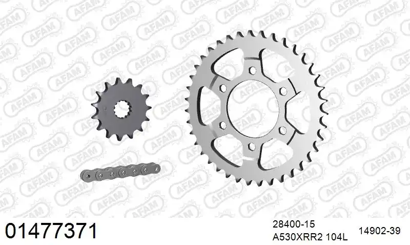 De AFAM 530XMR3 104 MRS is een universele kettingset zonder specifieke merken of modellen. Het is belangrijk om te controleren of deze set compatibel is met jouw motor voordat je bestelt.