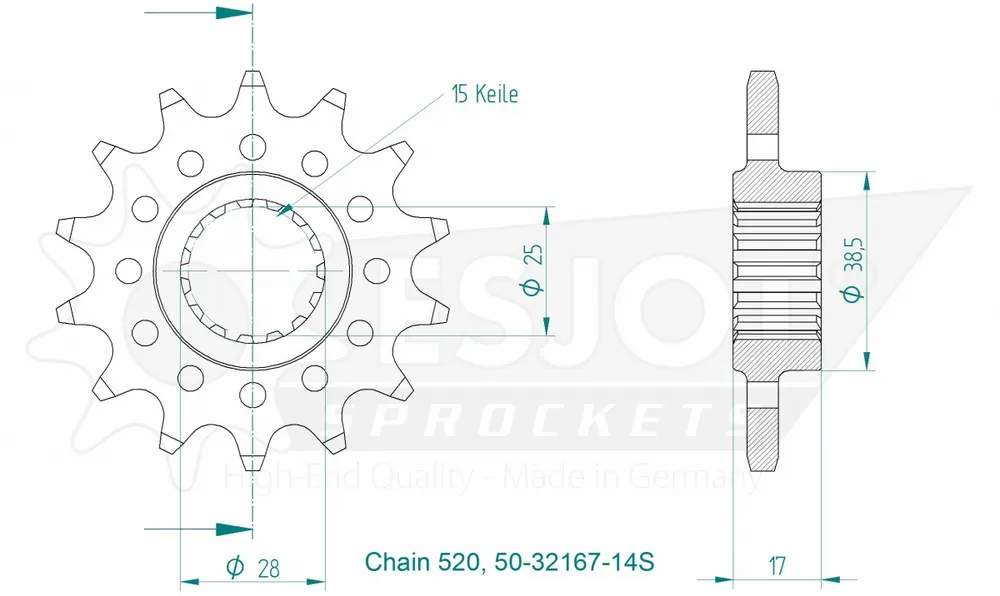Met de ESJOT FRONT 14T, LIGHT, 520 kies je voor een tandwiel dat niet alleen bijdraagt aan de prestaties van je motor, maar ook aan de levensduur van andere onderdelen. Door de juiste verhouding tussen voor- en achtertandwielen te behouden, blijft je motor soepel functioneren, wat resulteert in een betere rijervaring.