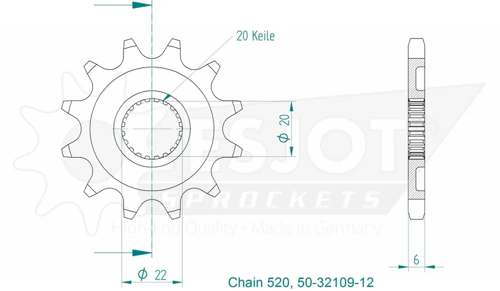 Geld-Terug-Garantie ESJOT – FRONT 12T, 520 – Sprockets – Compatibel met diverse Yamaha modellen