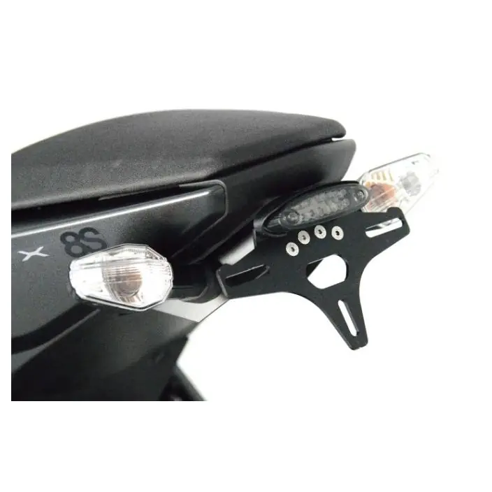 Ontworpen om de vaak grote plastic standaard kentekenplaathouder te vervangen en daardoor het design van jouw motor flink te verfraaien. Zowel de originele knipperlichten als kleine (R&G) knipperlichten passen op de R&G kentekenplaathouder. LED kentekenplaatverlichting is wanneer nodig altijd inbegrepen. De R&G kentekenplaathouder wordt ook wel Tail Tidy genoemd.