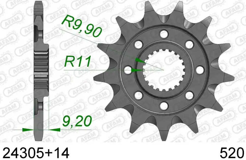 Gratis Retour AFAM – FRONT 14T, 520, SELF CLEANING – Sprockets – Zelfreinigend