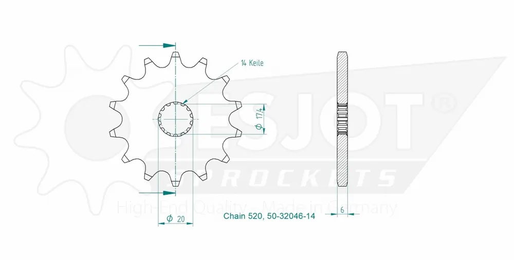 Groothandel ESJOT – FRONT 14T, 520 – Sprockets – Compatibel met Yamaha Yz 125