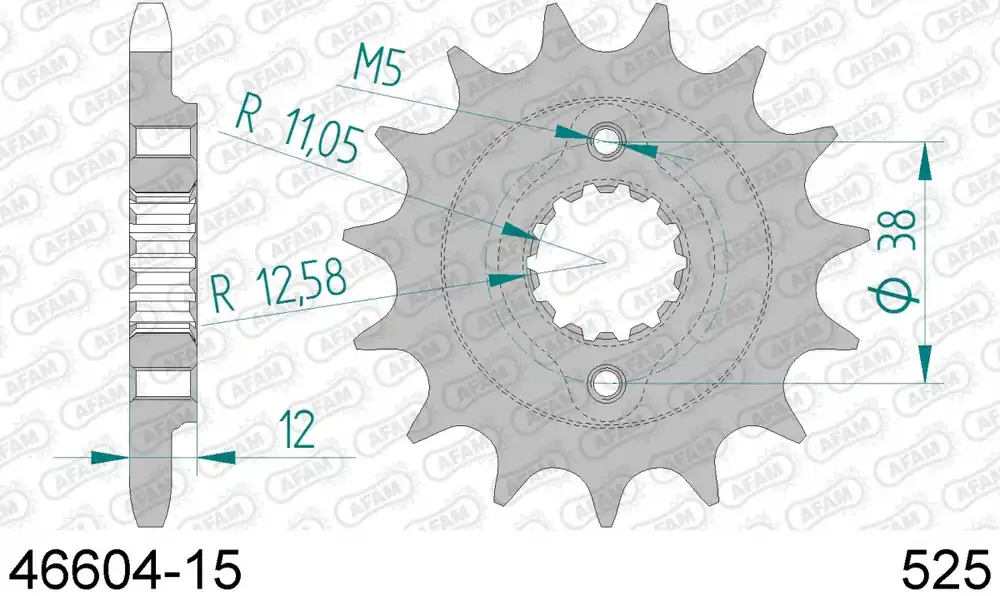 Handgemaakt AFAM – FRONT 15T, 525 – Sprockets – 15T Tandwiel