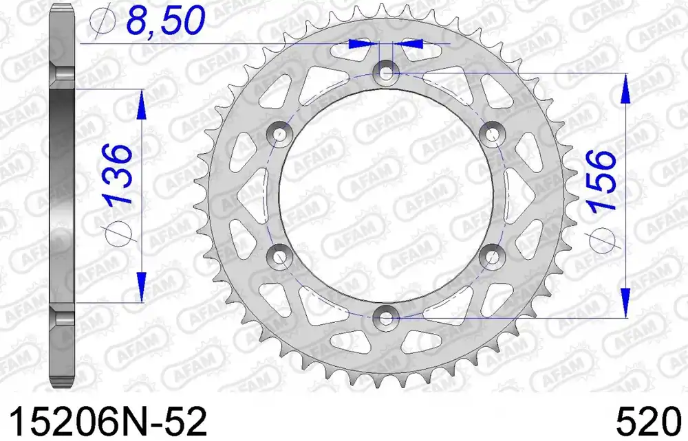 Hete Deal AFAM – REAR ALU 52T, 520 – Sprockets – Aluminium 52T