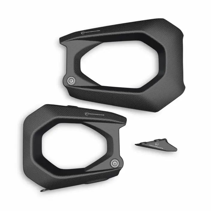 Uniek designaccessoire volledig gemaakt van carbon om de dubbelzijdige swingarm te beschermen. Dankzij de sterkte van het carbon valt het op door zijn functionaliteit en stijl, zorgt het voor effectieve bescherming en geeft het de motor een agressieve uitstraling,