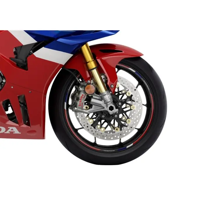 De set wiel stickers is niet alleen voorzien van het iconische Honda Racing-logo, maar versterkt ook de algehele race-esthetiek van het onderstel van de motorfiets. Met ��n enkele unit kunnen deze stripes eenvoudig op de motorfiets worden gemonteerd, waardoor het een handig en veelzijdig accessoire is. De wiel sticker-set is perfect voor liefhebbers die het race-uiterlijk van hun motorfiets willen verbeteren en voegt een vleugje stijl en sportiviteit toe aan het algehele ontwerp van de motorfiets.