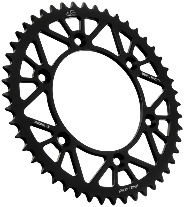 Dit sprocket is gemaakt van hoogwaardig aluminium, wat bijdraagt aan zowel het gewicht als de sterkte. Het is ontworpen om optimaal te presteren onder zware omstandigheden, waardoor je met vertrouwen de weg op kunt. De zwarte afwerking geeft niet alleen een stoere uitstraling, maar beschermt ook tegen corrosie en slijtage.