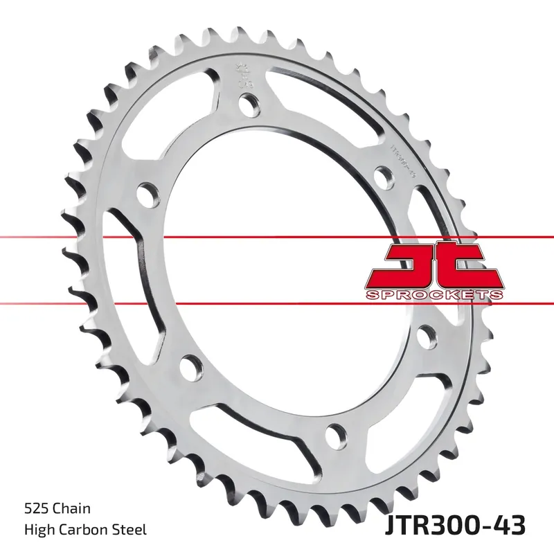 De JT SPROCKETS REAR STEEL 43T, 525 is een hoogwaardige achtertandwiel die speciaal ontworpen is voor diverse motoren, waaronder modellen van Honda en Yamaha. Dit sprocket biedt een uitstekende combinatie van duurzaamheid en prestaties, waardoor je motor optimaal functioneert.