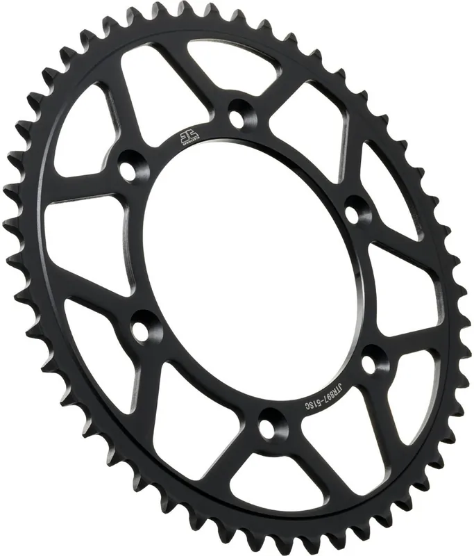 De JT SPROCKETS REAR STEEL SC 51T, 520 is een hoogwaardig achtertandwiel dat speciaal is ontworpen voor optimale prestaties en duurzaamheid. Dit tandwiel heeft een zelfreinigend ontwerp, wat betekent dat het vuil en modder effectief afvoert tijdens het rijden. Dit zorgt voor een langere levensduur en minder onderhoud.