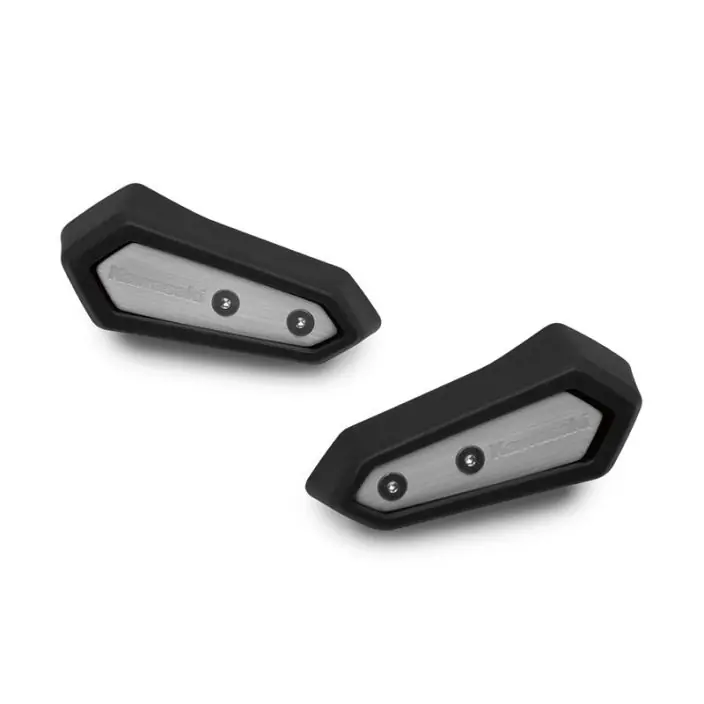 Frame sliders van hoogwaardig ABS-kunststof met aluminium inzetstuk en Kawasaki-logo. Inclusief montagebeugels, materialen en installatie-instructies.