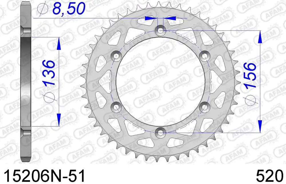Koopje AFAM – REAR ALU 51T, 520 – Sprockets – Aluminium 51T