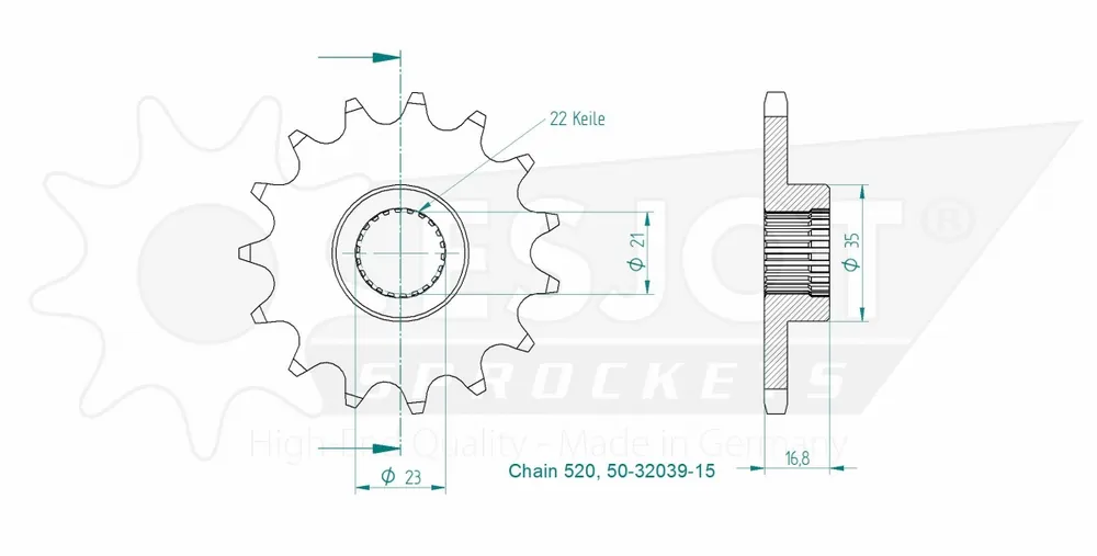 Laatste Kans ESJOT – FRONT 15T, 520 – Sprockets – Compatibel met Yamaha Xj 600