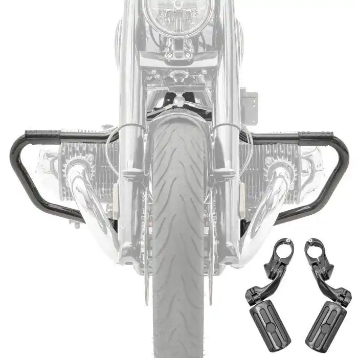 Laatste Versie Valbeugel Mustache compatibel met BMW R 18 / Classic 20-25 Craftride MV3 zwart + Voetsteunen voor Valbeugels CF1