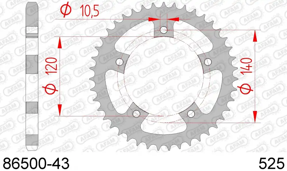 De AFAM REAR STEEL 43T, 525 biedt een aantal belangrijke voordelen. Ten eerste zorgt het voor een verbeterde acceleratie en algehele motorprestaties. Ten tweede is het ontworpen voor een nauwkeurige pasvorm, waardoor installatie eenvoudig en probleemloos is. Bovendien garandeert de stalen constructie een langere levensduur in vergelijking met goedkopere alternatieven.