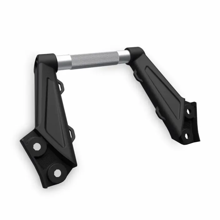 Elegant ontworpen accessoire, een buisvormig aluminium frame met een diameter van 12 mm, ontworpen om meerdere accessoires tegelijk te kunnen bevestigen, zoals een navigator en smartphone. Dankzij de praktische en robuuste beugel kan hij in enkele minuten worden gemonteerd en past hij perfect bij de lijnen en stijl van de fiets. Robuuste bevestiging die bestand is tegen trillingen en belasting.
