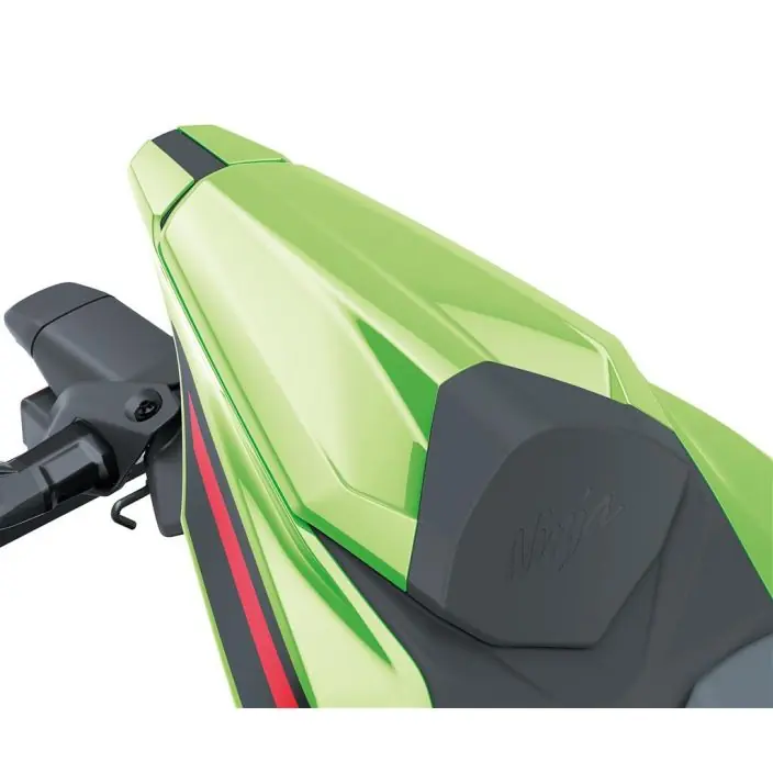 Buddyseat Cover om het sportieve uiterlijk van de Ninja te versterken. Beschikbaar in alle fabriekskleuren. Inclusief rubberen pad met Ninja-logo. Vervangt het passagierszadel.