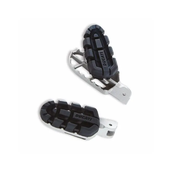 Strak en functioneel ontwerp: afgeronde randen die een goede grip garanderen en de zolen van de laarzen beschermen, waardoor onaangename schade wordt voorkomen. De open structuur zorgt ervoor dat stukjes vuil van de treden van je laarzen door de voetsteunen vallen. Satijnstaal is een onderscheidend element van dit product en versterkt de nobele enduro-oorsprong. Dankzij de mogelijkheid om rubberen voetsteunhoezen te monteren, zijn deze voetsteunen comfortabeler voor dagelijks gebruik en toergebruik.