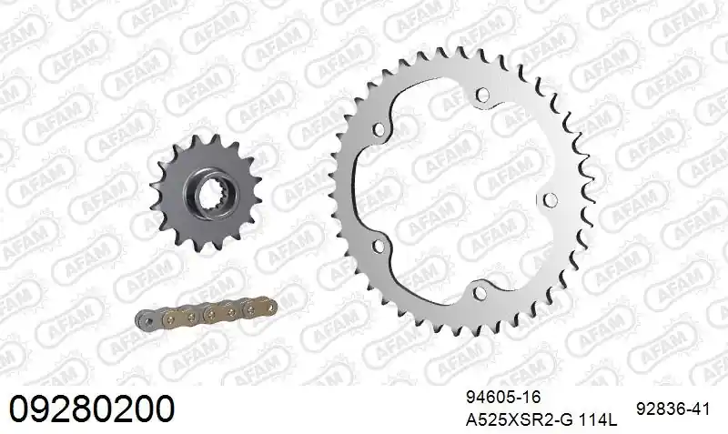 Met een focus op kwaliteit en prestatie, zorgt de AFAM kettingkit ervoor dat jouw motor soepel en efficiënt rijdt. De gouden afwerking geeft niet alleen een stijlvolle uitstraling, maar draagt ook bij aan de corrosiebestendigheid. Dit maakt het onderhoud van je motor een stuk eenvoudiger en verlengt de levensduur van de onderdelen.