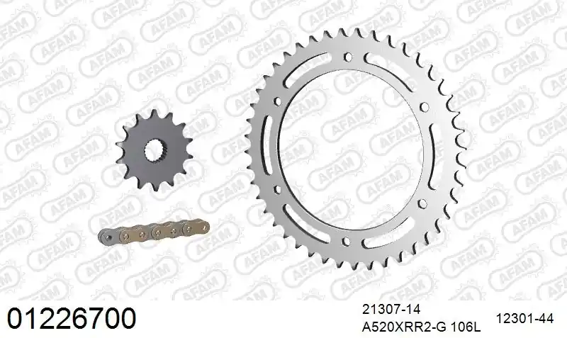 De AFAM 520XRR3 106 ARS (CLIP) GOLD & SPROCKETS is meer dan alleen een kettingset. Het is een synoniem voor kwaliteit en betrouwbaarheid. Of je nu een ervaren motorrijder bent of net begint, deze kettingset is ontworpen om aan jouw behoeften te voldoen.