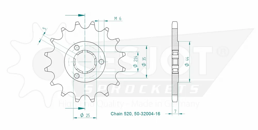 Met de ESJOT FRONT 16T, 520 profiteer je van een verbeterde acceleratie en een soepelere rit. Deze sprocket is vervaardigd met oog voor detail en kwaliteit, wat zorgt voor een lange levensduur en minder slijtage aan andere motoronderdelen.