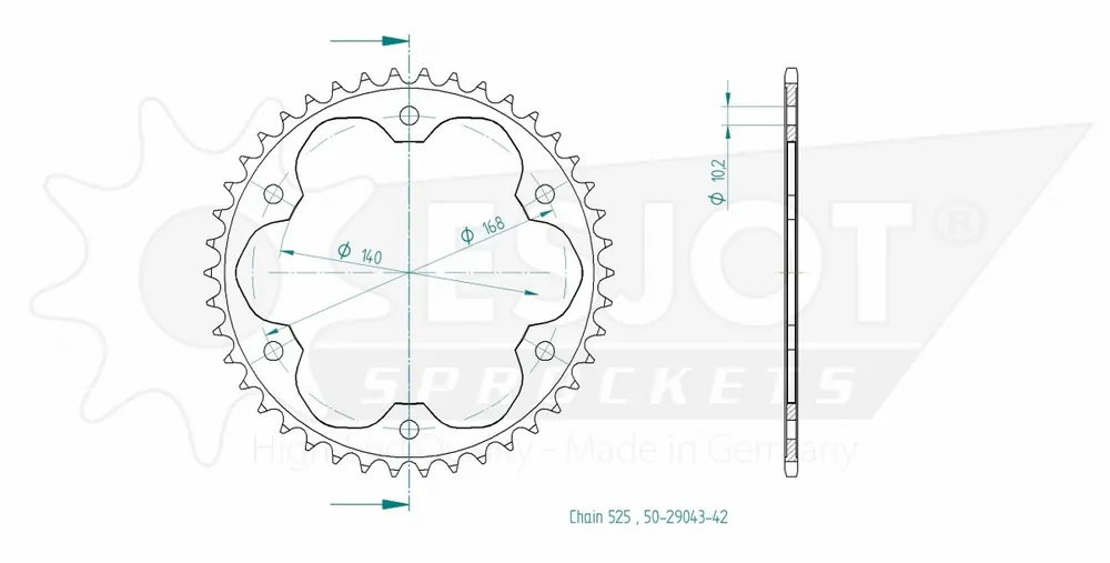 Met een tandwielverhouding van 42 tanden en een 525 kettingmaat, dit model biedt een ideale balans tussen acceleratie en topsnelheid. De 10.5MM bouten zorgen voor een stevige en betrouwbare bevestiging, zodat je met vertrouwen de weg op kunt.