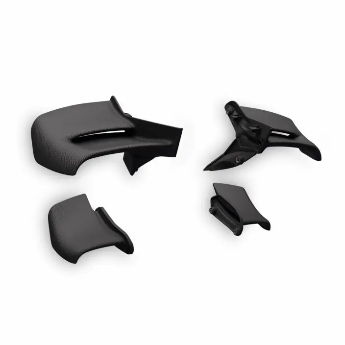 Deze essenti�le set is perfect voor wie op zoek is naar een extra vleugje exclusiviteit. Het is een opvallend accessoire dat bestaat uit 4 structurele vleugels van carbon, die zorgvuldig zijn vervaardigd om de motorfiets een onmiskenbare uitstraling te geven. De ultralichte constructie van carbon en de voor de windtunnel geoptimaliseerde vormen versterken de racegeest en leveren topprestaties.