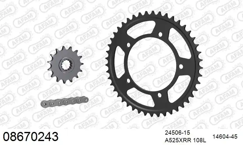 Deze kettingset is vervaardigd uit **staal**, wat zorgt voor een lange levensduur en uitstekende prestaties. De combinatie van ketting en tandwielen is ontworpen om soepel te functioneren, wat leidt tot een verbeterde rijervaring. Met de AFAM 525XMR3 ben je verzekerd van een optimale krachtoverdracht en duurzaamheid, essentieel voor elke motorfiets.