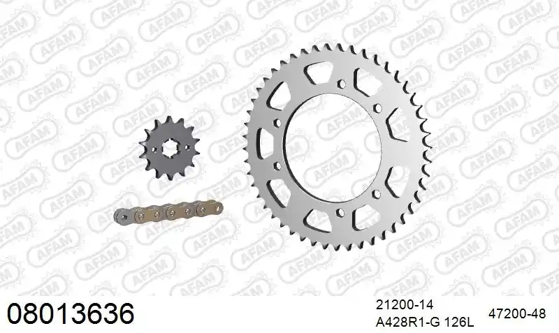 De AFAM 428R1 126 AR (CLIP) GOLD & SPROCKETS behoort tot de categorie Chain Kits. Het product heeft geen specifieke compatibiliteit met bepaalde merken of modellen, waardoor het een veelzijdige keuze is voor verschillende motoren en scooters.