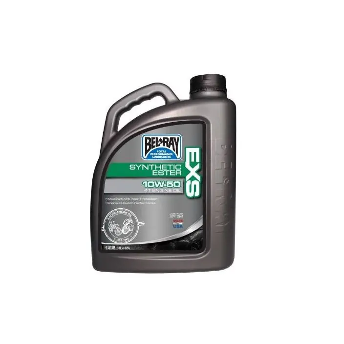 Vol synthetische motor olie gemaakt door Bel-Ray. EXS is specifiek samengesteld voor onovertroffen bescherming en prestaties in alle motoren. EXS is ontwikkeld tijdens de wereldkampioenschappen Superbikes. EXS is samengesteld uit hoogpolaire synthetische basisolien en Bel-Ray’s exclusieve additievenpakket ter bescherming van de motor, de versnellingsbak en de koppeling onder de zwaarste omstandigheden en bij hoge temperaturen. Wordt geleverd in een flacon van 4 liter met handige schenkdop.