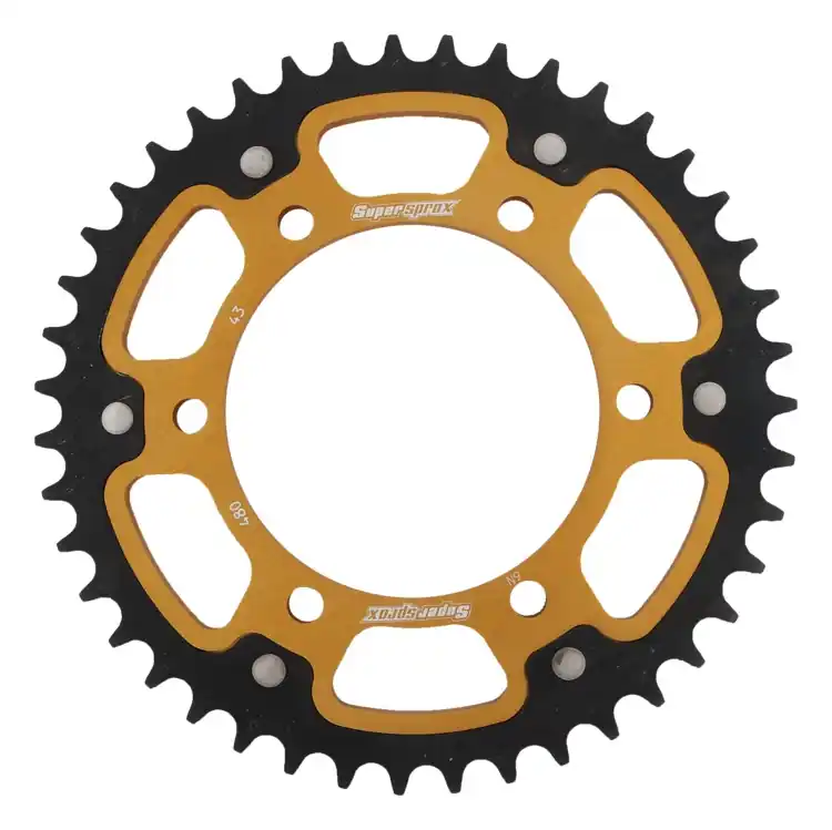 De SUPERSPROX REAR STEALTH 43T sprocket in een stijlvolle gouden kleur is de ideale keuze voor jouw motor. Met een tandverhouding van 43T en een 525 kettingcompatibiliteit, biedt deze sprocket de perfecte balans tussen prestaties en duurzaamheid. Of je nu rijdt op een Suzuki of Yamaha, deze sprocket is ontworpen om aan jouw behoeften te voldoen.