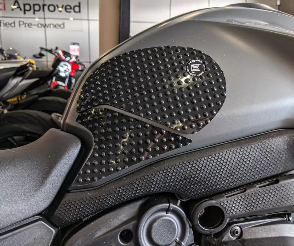 De EAZI-GRIP CLEAR TANK GRIPS zijn gemaakt van hoogwaardige materialen die zowel duurzaamheid als comfort bieden. Ze zijn eenvoudig te installeren en zorgen ervoor dat je grip hebt waar je dat het meest nodig hebt. Of je nu een ervaren rijder bent of net begint, deze tank grips zijn een waardevolle toevoeging aan jouw Ducati.