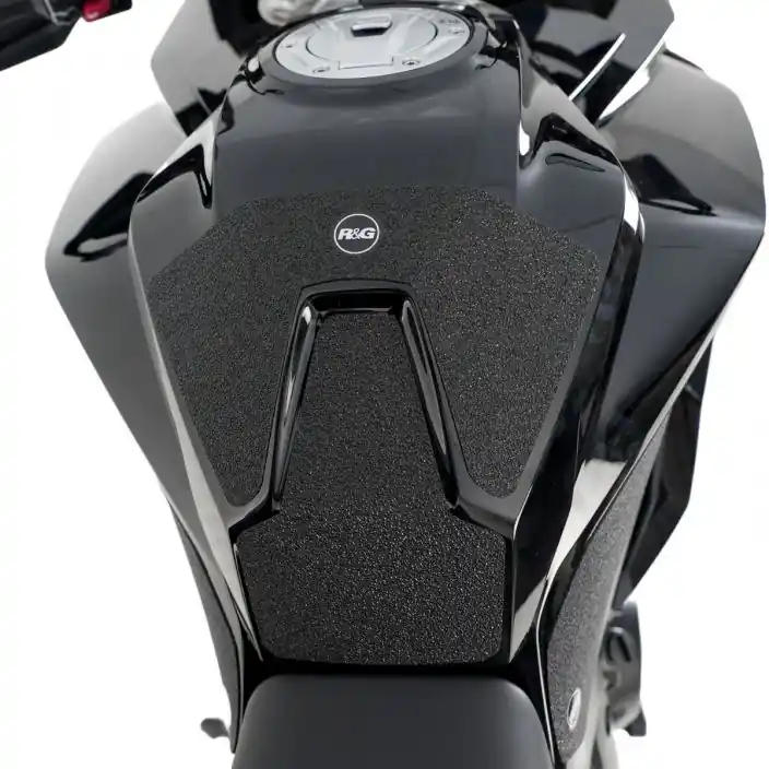 Bescherm de tank van uw motorfiets en verbeter tegelijkertijd uw grip met deze tweedelige R&G Tank Pad. Het ontwerp is specifiek bedoeld om lakschade door ritsen of gespen te voorkomen, terwijl de getextureerde afwerking u meer controle geeft tijdens het remmen en in de bochten.