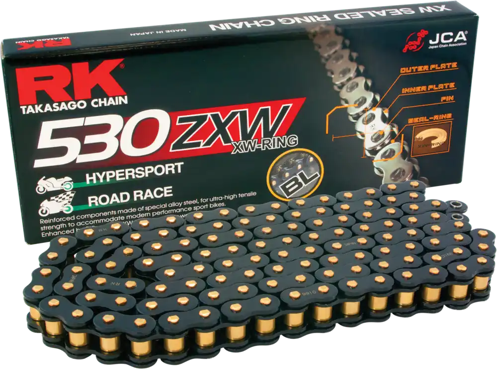De RK BL530ZXW is een hoogwaardige ketting die speciaal ontworpen is voor motoren en scooters. Met zijn unieke BLACK-GOLD afwerking biedt deze ketting niet alleen een opvallende uitstraling, maar ook uitstekende prestaties. De ultra versterkte constructie zorgt ervoor dat deze ketting bestand is tegen de zware omstandigheden van dagelijks gebruik.