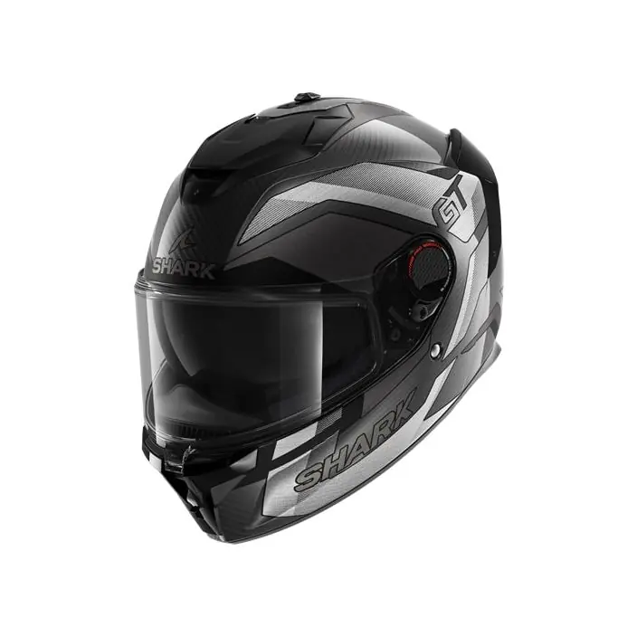 De Shark Spartan GT Pro Carbon Ritmo biedt sportieve looks en features zoals een dubbele D-ring sluiting. Gemaakt van glasvezel en dankzij het ‘Emergency Removal System’ van Shark zijn de wangkussens bij een ongeval gemakkelijk te verwijderen.