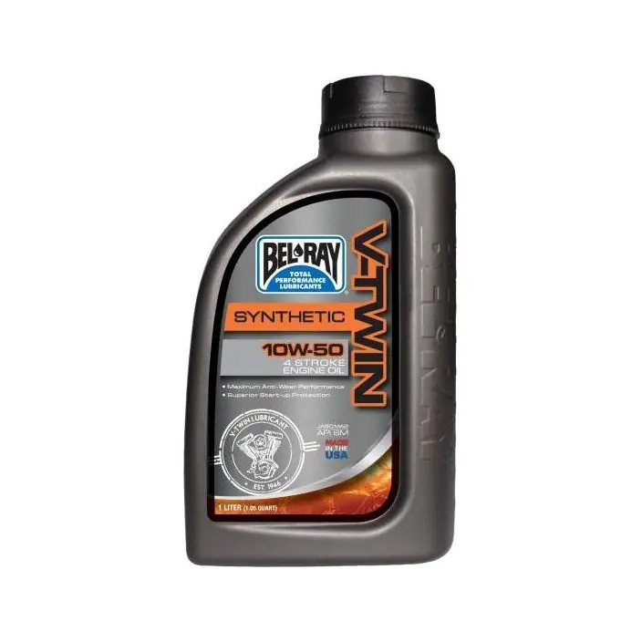 De V-Twin Synthetic Engine Oil 10W-50 is een 100 procent synthetische, hoogwaardige multigrade 4-takt motorolie die geschikt is voor zowel lucht als watergekoelde motoren. Voldoet aan en overtreft de eisen die aan een V-Twin motorolie worden gesteld. Minimaliseert wrijving voor een verhoogd vermogen en lagere bedrijfstemperaturen en reduceert lager- en kleppenmechanisme slijtage. Houdt zuigers en zuigerveren schoon en verlaagt olieverbruik.