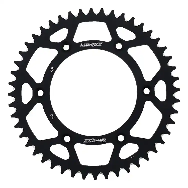 De SUPERSPROX REAR ALU 48T is een hoogwaardige achtertandenkrans, ontworpen voor optimale prestaties op jouw motor. Met een tandenaantal van 48 en een zwart gepoedercoate afwerking, biedt deze sprocket zowel functionaliteit als een stijlvolle uitstraling. Dit product is gebouwd met een focus op duurzaamheid en gebruiksgemak, zodat je met vertrouwen de weg op kunt.
