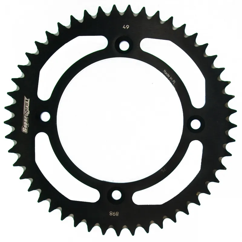 Een aluminium sprocket, zoals de SUPERSPROX REAR ALU 49T, is lichter dan een traditionele staalversie, wat leidt tot een betere acceleratie en prestaties.