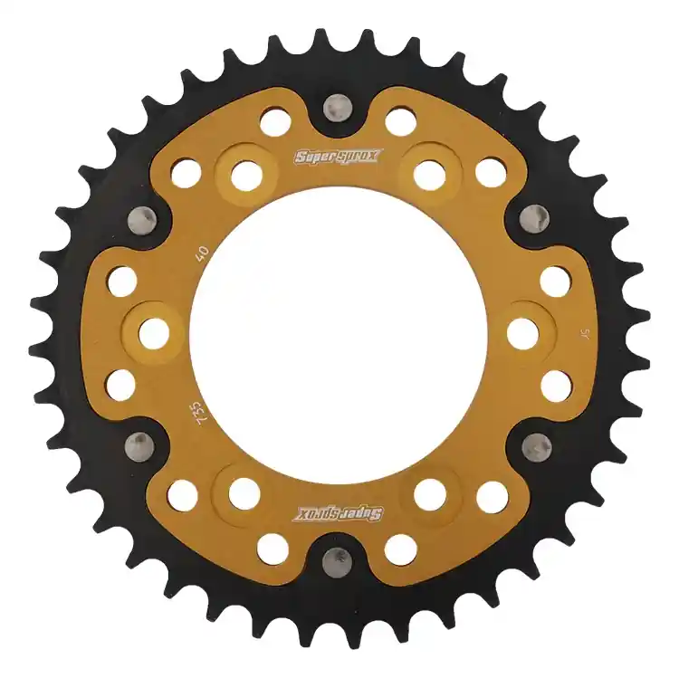 De SUPERSPROX REAR STEALTH 40T, GOLD, 520 is een hoogwaardige achtertandwiel die perfect is voor jouw Ducati. Dit sprocket biedt een uitstekende combinatie van kracht en stijl, met een opvallende gouden afwerking die je motorfiets een unieke uitstraling geeft.