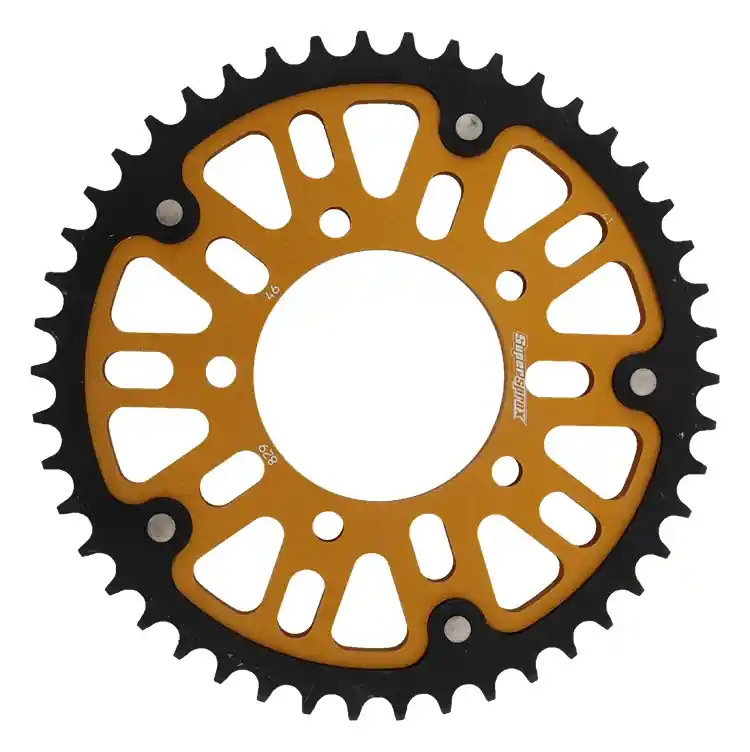De SUPERSPROX REAR STEALTH 45T is een hoogwaardige achtertandwiel, speciaal ontworpen voor diverse modellen van Suzuki. Dit tandwiel, uitgevoerd in een stijlvolle gouden kleur, biedt niet alleen een opvallende uitstraling maar ook uitstekende prestaties. Met een tandconfiguratie van 45T en een kettingmaat van 530, is dit onderdeel perfect voor motorrijders die kwaliteit en betrouwbaarheid willen.