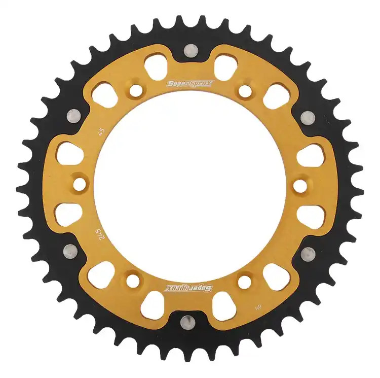 De SUPERSPROX REAR STEALTH 45T is een hoogwaardige sprocket die speciaal is ontworpen voor optimale prestaties van je motor. Met een opvallende gouden afwerking en een robuuste constructie, biedt deze sprocket niet alleen een visueel statement, maar ook de betrouwbaarheid die je nodig hebt tijdens je ritten.