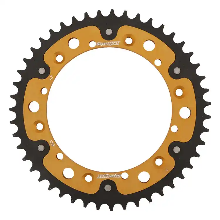 De SUPERSPROX REAR STEALTH 47T sprocket is vervaardigd met oog voor detail en kwaliteit. De gouden kleur geeft niet alleen een unieke uitstraling, maar de constructie is ook ontworpen voor duurzaamheid en een langere levensduur. Dit betekent dat je minder vaak hoeft te vervangen en meer tijd op de weg kunt doorbrengen. De sprocket is eenvoudig te installeren en past perfect op de compatibele modellen, wat het een praktische keuze maakt voor elke motorrijder.