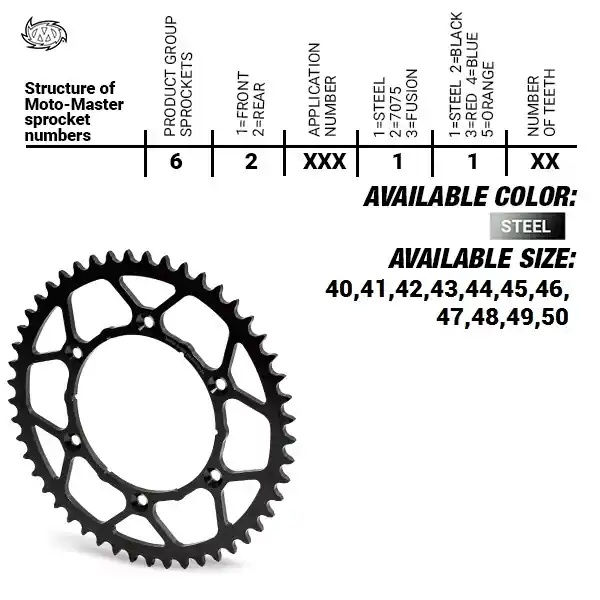 De MOTO MASTER REAR STEEL ULTRALIGHT is geschikt voor de KTM SX65 (98-) en de HSQ TC65 (14-). Dit maakt het een flexibele optie voor verschillende modellen binnen deze categorie.